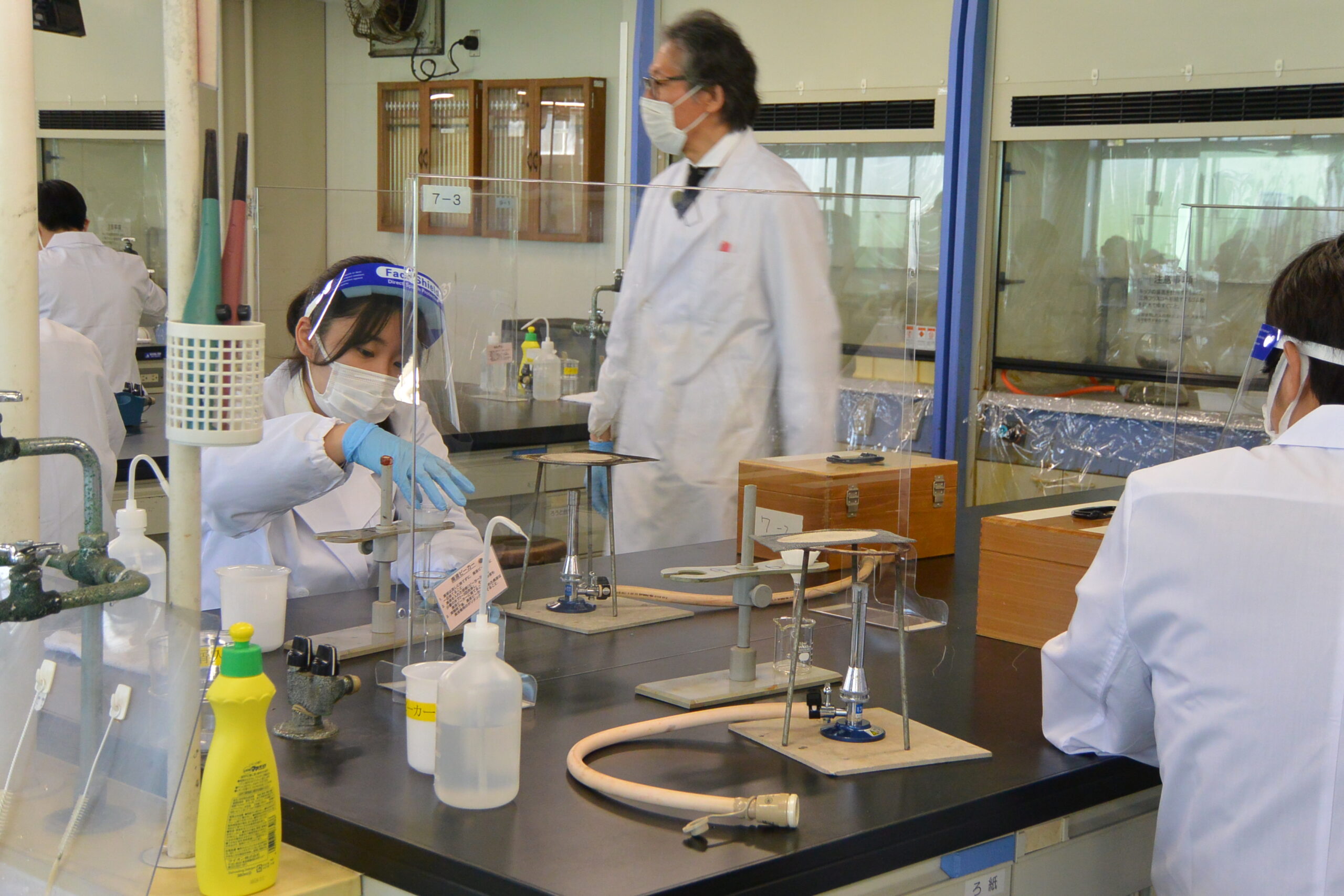 一人ひとり実験していますが,譲り合いながら流しを利用。