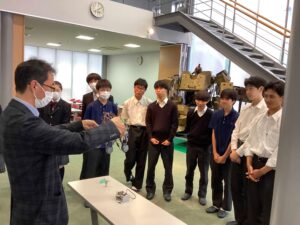 5月1日のMUプログラムでは、精密機械工学科を訪問させていただきました。マイクロ機能デバイス研究センター長や学科の教授、本校CSTコースの卒業生でもある助手の方から、初めての学科説明も含めた理工学部全体の概要も講演して頂きました。その後に精密機械工学科の説明とマイクロ機能デバイス研究センター内や研究室の見学会。希望者はクリーンルームの中にも案内していただきました。