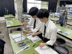 5月17日、3年CSTコースの生徒は、大学物理学実験を受講しました。今日のテーマは『誤差演習』です。測定器具を用いて、実際に測定を行いながら問題の演習に取り組み、実験を行う上で避けては通れない誤差の取り扱いについて学びました。次回の実験からは、本日学んだ内容に十分留意して、精度の高い実験を行っていきましょう。