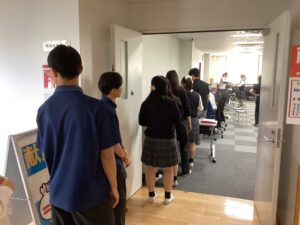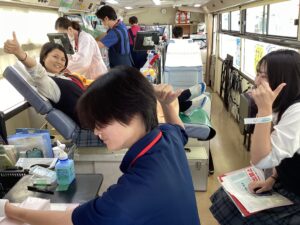 10月2日、希望者を対象とした校内献血を実施しました。献血Web会員サ-ビス「ラブラッド」を活用して、昨年度から献血時間を「授業時間内」と「放課後」から選べるようにしました。QRコ-ドを読み込み、個人情報を事前登録することで当日の待ち時間が少なくなり、例年よりもさらに安全で快適な献血になりました。今年度の献血受付数は生徒131名、教職員8名。採血人数108名でした。「献血希望者も採血者も多く、素晴らしいです」と日本赤十字社の担当者の方から感謝の言葉をいただきました。保護者のみなさま、ご家庭での体調管理にご協力くださいまして、ありがとうございました。