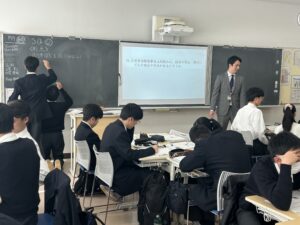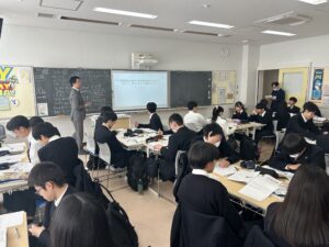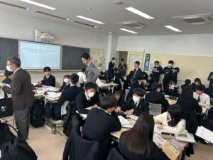 11月21日(金)に本校にて令和7年度日本大学付属高等学校地歴公民科授業研究会が実施されました。本部付属学校課の滝澤雅彦様,渡邊康太様,日本大学文理学部教職センター指導員の野村泰弘様をはじめ,日本大学付属校19名の先生方にご来校いただき,公開授業の見学および研究討議がおこなわれました。
