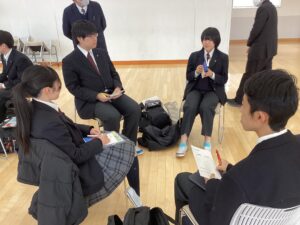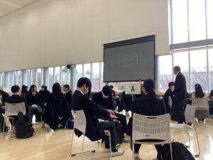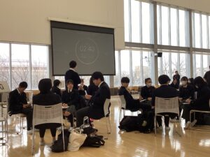 参加した生徒は、各自お薦めの本を持ち寄り、7つのグループに分かれ、3分間でその本の魅力についてプレゼンをしました。プレゼン中も質問タイムも盛り上がり、グループ内で「1番読みたい」という票を集めたチャンプ本が決定しました。
