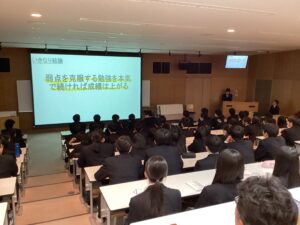 今回の講演を通して生徒たちは大きな刺激を受けたようで、講演後には卒業生の控室を訪れ、直接質問をする2年生の姿も多く見られました。生徒たちの受験に対する意識も大いに高まったようです。