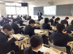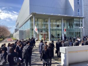 式典後は、新担任の紹介とホームルームが行われました。また、今年度も大階段で保護者を交えた記念撮影が行われました。392名の新入生の皆さん、ご入学まことにおめでとうございます。最初は新しい環境で覚えることも多く、緊張する場面もあるかもしれませんが、焦らずに歩みを進めてください。そして、今日から始まる高校生活を存分に楽しみましょう。