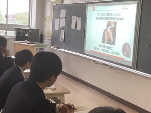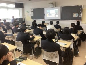 本日の研修会では、各教室の電子黒板を使い、ソーシャルメディア講座を視聴しました。昨今、インターネット・SNSによる中高生のトラブルが増えてきています。他者を不快にさせない使い方、犯罪に巻き込まれない使い方を専門家の方が説明してくれました。また、5教科の教科主任が、今後の学習方法についてアドバイスしてくれました。それ以外にも校外研修(4/21八景島シーパラダイス)でのバスの座席・レクリエーションを話し合っているクラスや、クラスの役員・係決め、図書室など校舎内の施設見学を行っているクラスもありました。どのクラスも少しずつ打ち解けてきて、笑顔が多くなってきました。生徒証などで使用する顔写真の撮影も順番に行いました。