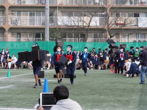 11月12日,体育祭(午後の部)も大いに盛り上がりました。すべての場面で,生徒はもちろん教職員も、全力で競技し,全力で応援し,全力で楽しめた1日でした。最後に,校長先生より「全校での開催に向けて工夫して企画してくれた人,準備をしてくれた人,体育祭を運営してくれた人,体育祭開催にご理解ご協力いただいている近所の方々,そして体育祭に参加した全員,…に感謝しましょう,Thank you(今回のテーマ)」お話があり,感謝の気持ちを全員拍手で表しました。