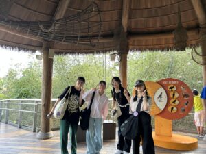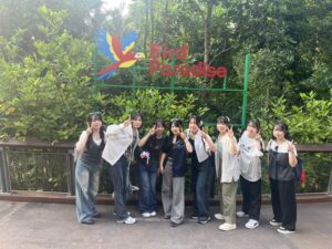 バードパラダイスでは合計400種3,500羽以上の鳥類が飼育されています。各エリアには世界各地の自然環境が再現されており、多くの鳥たちが放し飼いにされています。鳥を手に乗せたりなど触れ合うこともでき、日本ではなかなかできない体験を生徒は楽しんでいました。