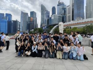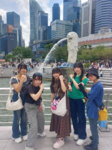 シンガポールの国家的シンボルであるマーライオンをバックにクラス毎で集合写真を撮った後、生徒たちはそれぞれ思い思いのポーズでマーライオンとの写真撮影を楽しんでいました。