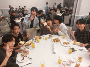 修学旅行2日目の朝はどのクラスも遅刻することなく、ホテルでの朝食バイキングを食べていました。