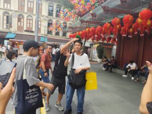シンガポールのチャイナタウンは、中国系移民の歴史と多文化が色濃く残る活気あふれるエリアです。生徒が店員さんと価格交渉をしている様子も見受けられ、お土産などのショッピングを楽しんでおりました。