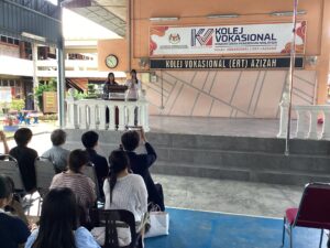 その後、Kolej Vokasional Azizahの現地校生徒によるスピーチ、日本大学習志野高等学校の代表生徒によるスピーチが行われ、生徒同士の思いが伝えられる貴重な機会となりました。両校による記念品交換では、友好の証として和やかな雰囲気の中で行われ、交流がより深まる充実した時間となりました。