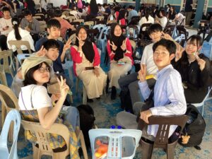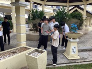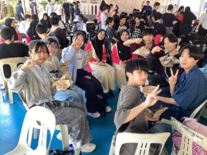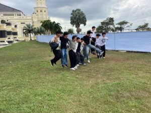 また、現地校生徒による出し物発表が披露され、マレーシアの文化や表現に直接触れることができました。グループ交流では、校内ツアーをはじめ、マレーシアの伝統遊びや日本の伝統遊びを紹介し合うなど、実際に体験しながら交流を深めることができました。言葉や文化の違いを超え、生徒同士が笑顔で関わる姿が多く見られました。