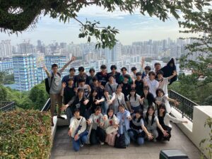 修学旅行最終日は、最初にマウントフェーバーへ向かい、展望台にてクラス写真撮影を行いました。シンガポールの街並みを一望できる絶景の中、旅の思い出を写真に収めました。